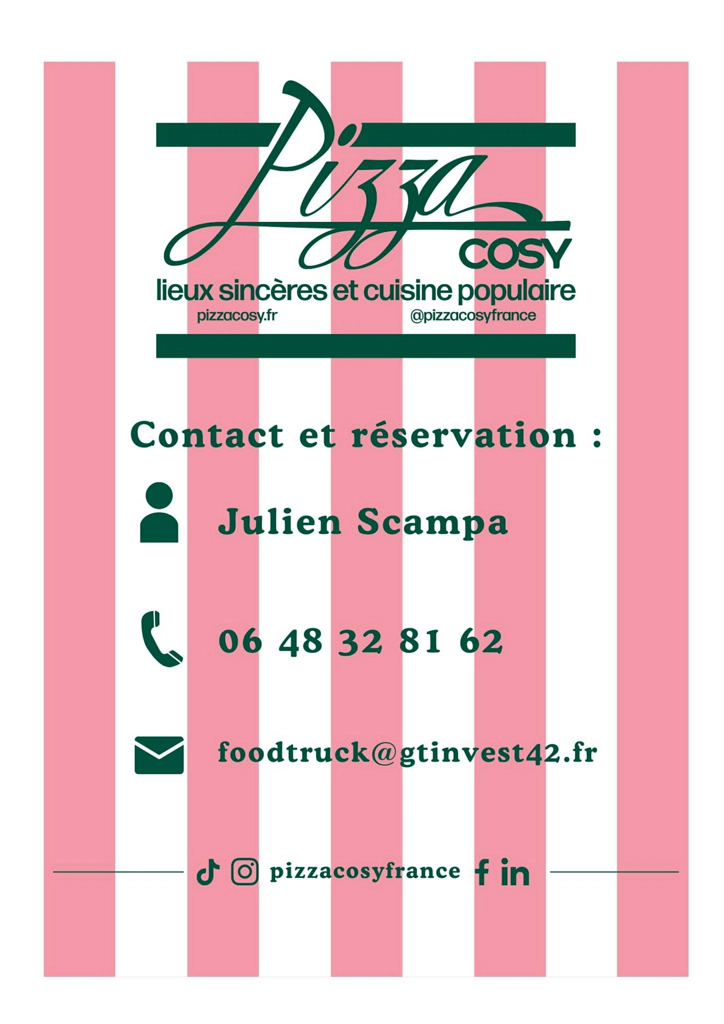 Nouveau : « Pizza Cosy » le dimanche soir, Place de la Mairie 🍕🥗 🍰🥤