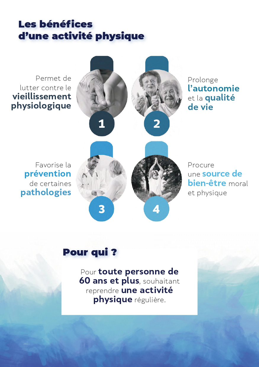 Mais l’action n’est pas terminée. Nous permettons à toute personne de plus de 60 ans, de ces communautés de communes, de pouvoir faire un bilan physique de santé puis rejoindre un des deux groupes d’activité physique mis en place sur la commune de :