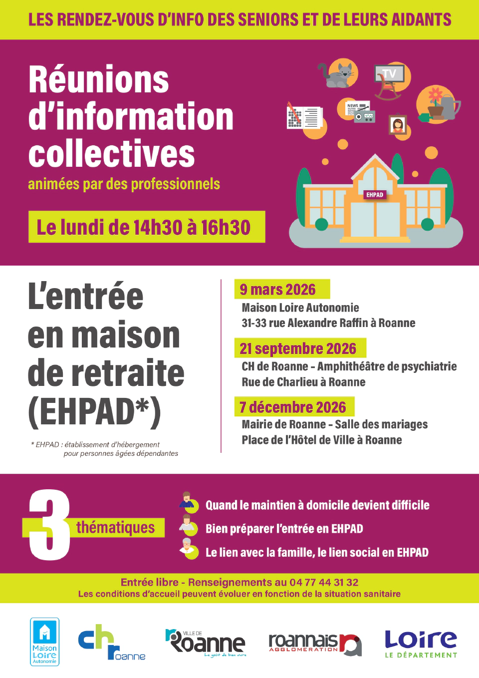 Réunion d’information collective : « L’entrée en maison de retraite EHPAD » — lundi 9 mars
